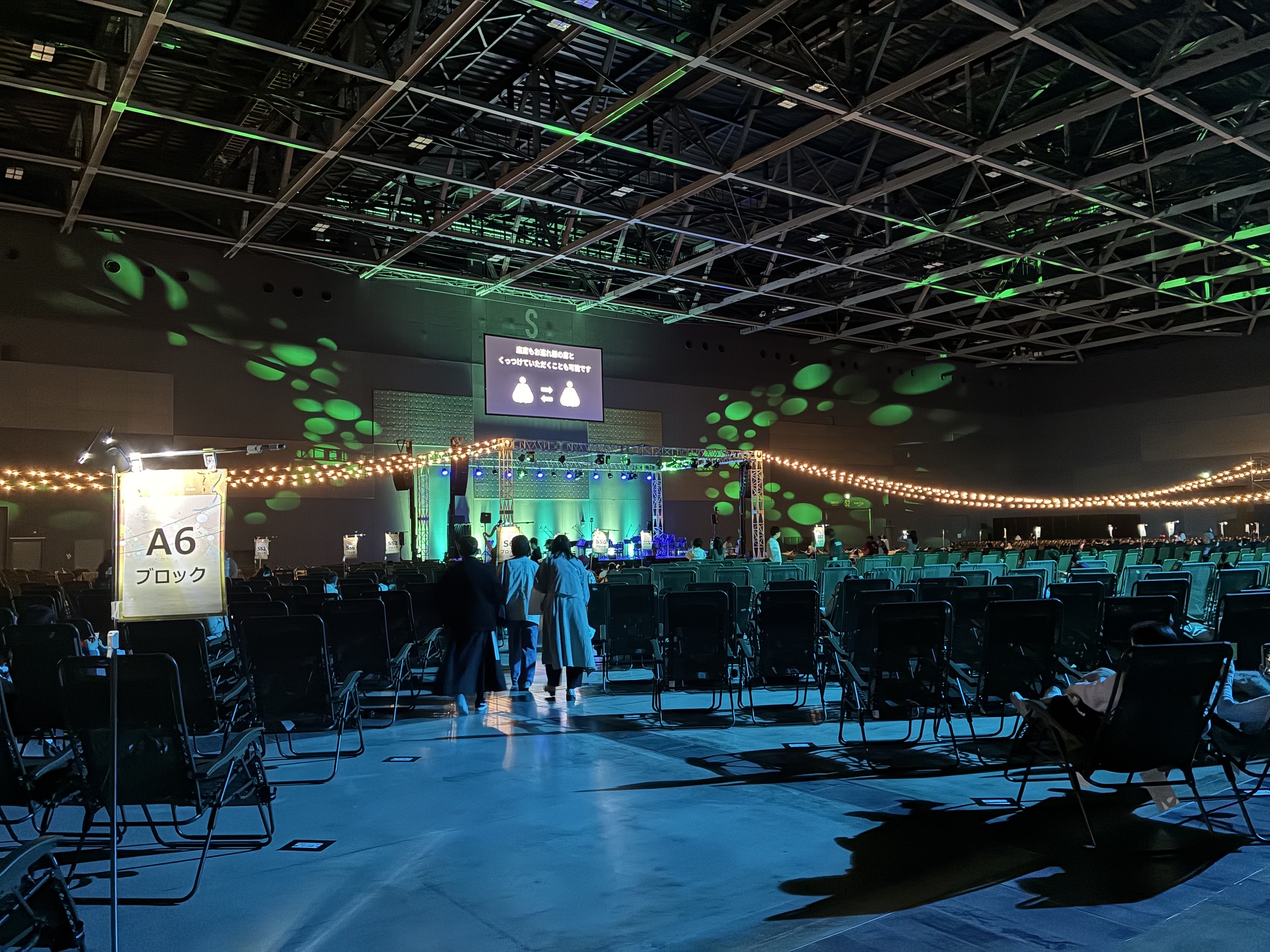 会場は予め暗くしてあり、イルミネーション?がキラキラしていて、屋外コンサートのような雰囲気でした。