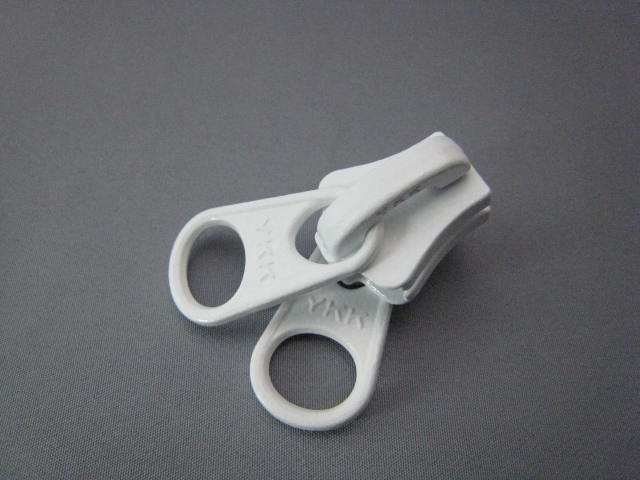 10番のビスロンファスナー用のスライダーです。 引手がどの位置にあってもロック作用をもたない、両面の引き手の短いタイプになります。