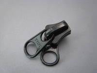 10番のビスロンファスナー用のスライダーです。 引手がどの位置にあってもロック作用をもたない、両面の引き手の短いタイプになります。