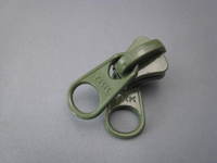 10番のビスロンファスナー用のスライダーです。 引手がどの位置にあってもロック作用をもたない、両面の引き手の短いタイプになります。