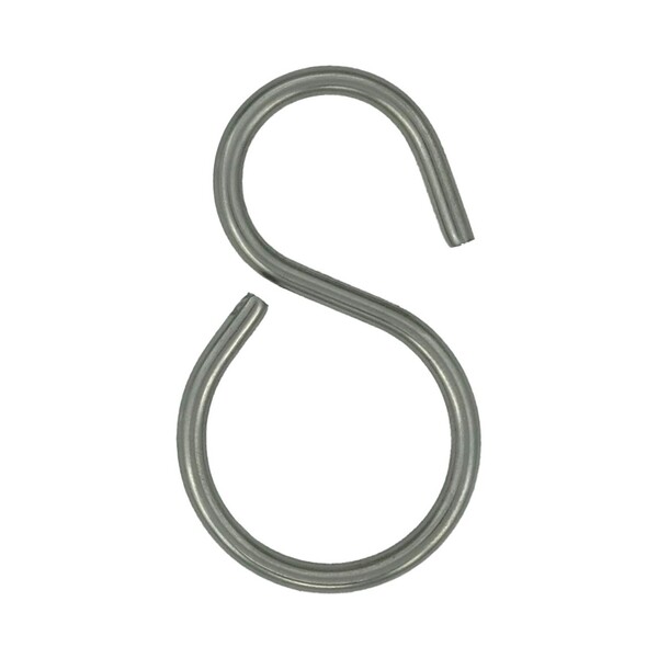 3mmのステンレスの線材をSの字に曲げたフックです。物を吊るしたり引っ掛けたりする時などに使います。メッキを施してない、生地仕上げになっています。片側の口が閉じたタイプです。