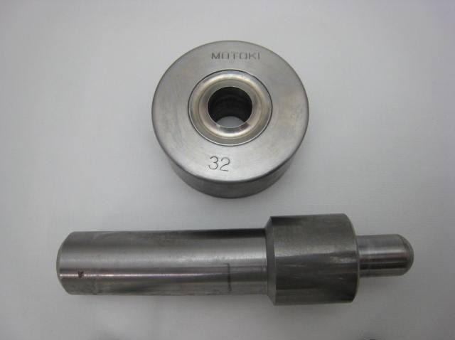 32アイレット(B)真鍮専用の手打ちタイプの取付器です。打ち棒と皿のセットで、木槌やプラハンマー等で叩いて取付けます。※金属ハンマーは使用しないでください。手打器はハトメのメーカーにより形状が異なりますのでご注意下さい。