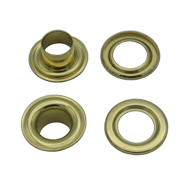 バッグ・服飾等の飾りや、テント・シート・幕などの紐通しや補強具として使用されています。真鍮製の足長タイプになります。厚みは7mmくらいまでのものにご使用下さい。