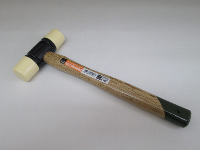 ハトメやホックを打つ際に使用します。頭部は商品を傷つけにくい柔軟強靭なプラスチック製です。金属製と違って軽く、騒音も少ないのが特徴です。