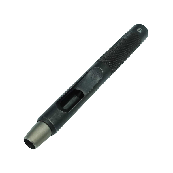 直径6mmの穴をあけるための工具です。ハトメト等の下穴をあける際に使用します。焼入れ加工で強度を高めた商品になります。木槌やプラハンマーで叩いて使用して下さい。※金属ハンマーは使用しないでください。