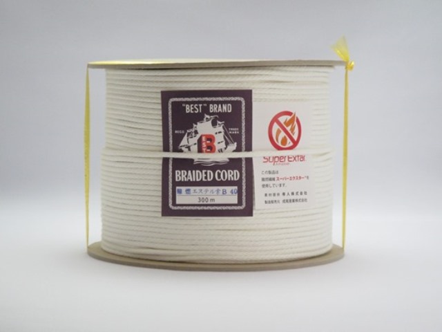 帝人の難燃ポリエステル繊維「スーパーエクスター」を100%使用した金剛打(12打芯入り)ロープです。スーパーエクスターはポリエステル繊維の内部にTEIJIN独自のノンハロゲン系防炎剤を化学結合しており、表面的な加工ではない為、耐久性に優れた防炎性能を実現しています。強制的に燃焼させても有毒なシアノンガスやハロゲンガスが発生せず、一酸化炭素や煙の発生もごく微量です。ロープとしては三つ撚りの欠点であるねじれが出来にくく、切り口がほつれにくい性質を持っています。