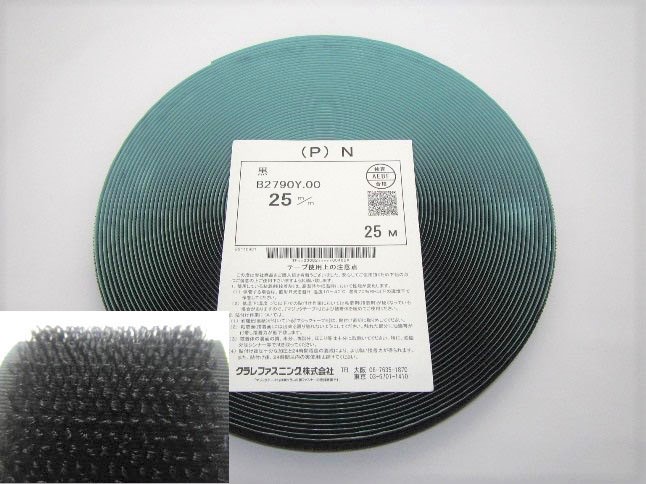 - マジックテープ クラレ製 強力粘着付25mm×25m(P)N黒-B(メス)
