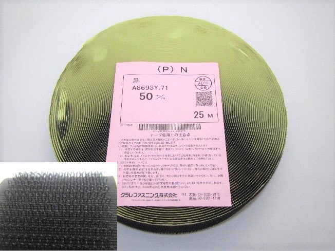 マジックテープ クラレ製 強力粘着付50mm×25m(P)N黒-B(メス) マジックテープ クラレ製 強力粘着付50mm×25m(P)N黒-B(メス)