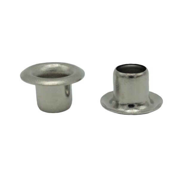 4mm穴の丸足タイプのハトメです。腕章の紐や安全ピンの通し穴等の補強金具として使用されてます。座はついておりません。