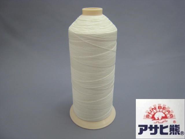 アサヒ熊ブランドのポリエステルボンド糸です。特殊ボンド加工により、撚り戻りによる目飛び・糸割れがほとんどありません。#5番手は生成、黒、OD、ライトグリーン、オレンジの5色在庫しております。