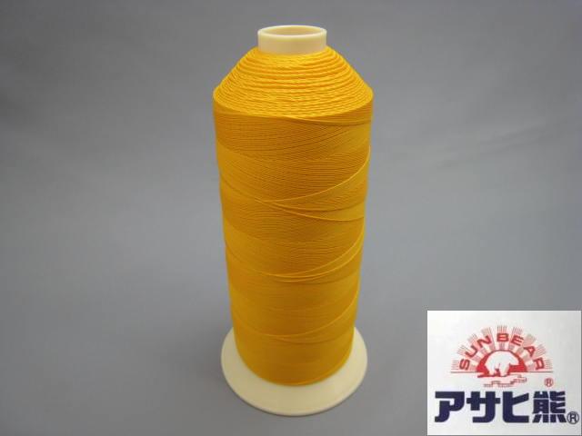アサヒ熊ブランドのポリエステルボンド糸です。特殊ボンド加工により、撚り戻りによる目飛び・糸割れがほとんどありません。#5番手は生成、黒、OD、ライトグリーン、オレンジの5色在庫しております。