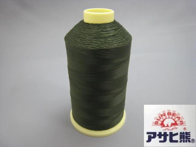 アサヒ熊ブランドのポリエステルボンド糸です。特殊ボンド加工により、撚り戻りによる目飛び・糸割れがほとんどありません。#8番手は生成、OD、ライトグリーン、オレンジの4色在庫しております。