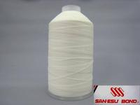 サンエス社製のポリエステルボンド糸です。産業資材用途の高強力の原糸を使用し更に樹脂加工を施していますので他のボンド加工していない縫糸に比べると非常に対摩耗性の高い糸です。帆布・ハングライダー・テント・シート・皮革製品・スポーツ用品・ジーンズの皮ラベル等の縫製に使用されています。