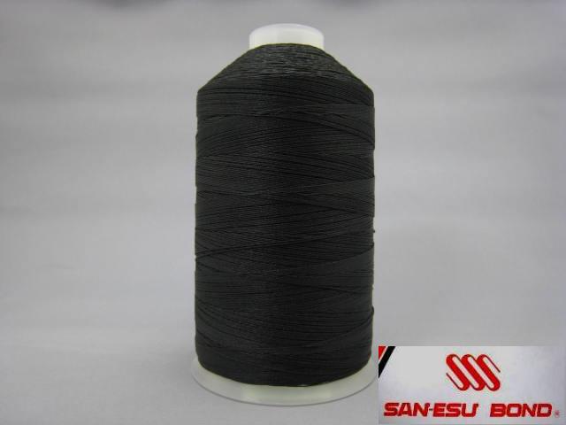 サンエス社製のポリエステルボンド糸です。産業資材用途の高強力の原糸を使用し更に樹脂加工を施していますので他のボンド加工していない縫糸に比べると非常に対摩耗性の高い糸です。帆布・ハングライダー・テント・シート・皮革製品・スポーツ用品・ジーンズの皮ラベル等の縫製に使用されています。