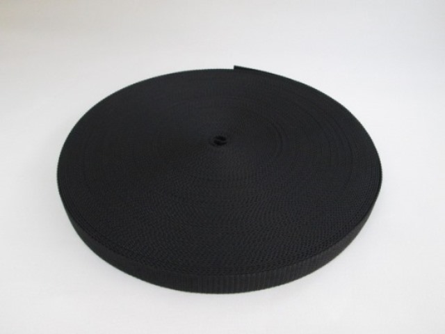 ポリプロピレンは繊維の中で最も比重が軽く、強度も強く、耐薬品性に優れた繊維です。またカラー原糸は原着方法ですので、美しい光沢と色調を持っています。サイズによって、色の種類も豊富ですので、ショルダーバッグ等のベルトに広く使用されています。在庫品は黒のみとなります。