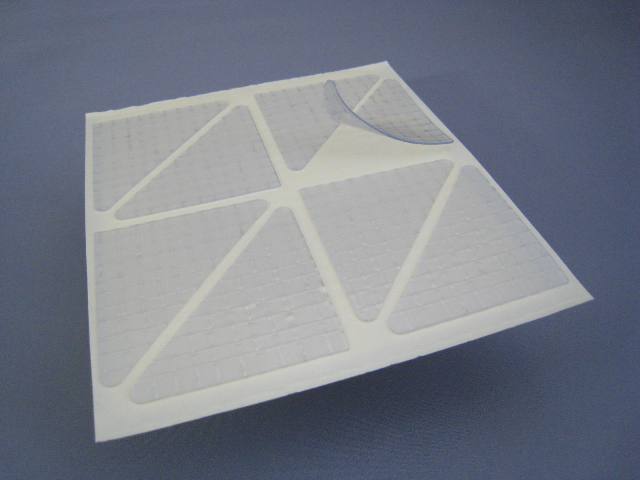 出力したターポリンのコーナーの補強として使用ください。糸入り透明の生地を使用してますので、丈夫で、補強した部分が目立たず、すっきりしたデザインに仕上がります。 裏面が粘着付になってますので、縫製することなく貼り付けるだけでハトメの補強となります。実用新案 登録第3176927号詳細は下部の【詳細規格表】のPDFを参照下さい。