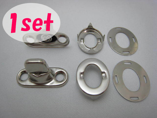 自動車の幌と本体を留める金具として使用。手でひねって簡単に開閉が出来ます。取付はオスは5mmの2穴に木ネジ・カシメなどで留めます。メスは専用の穴あけ具で生地に穴をあけ本体を差し込み裏から座をかぶせて爪部を曲げて留めます。