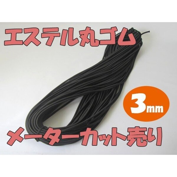 エステル丸ゴム 3mm黒 カット売り(クリックポスト便可)